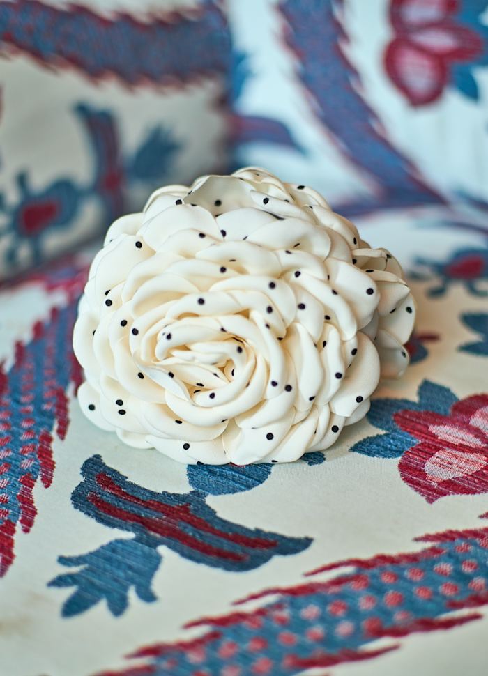 BCVILLA MEGA FLOWER HAIR CLAW, CREME W. DOTS