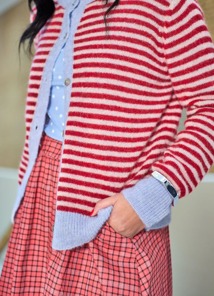 BLACK COLOUR CARDIGAN, BCDELL STRIPED KNIT CARDIGAN, RED