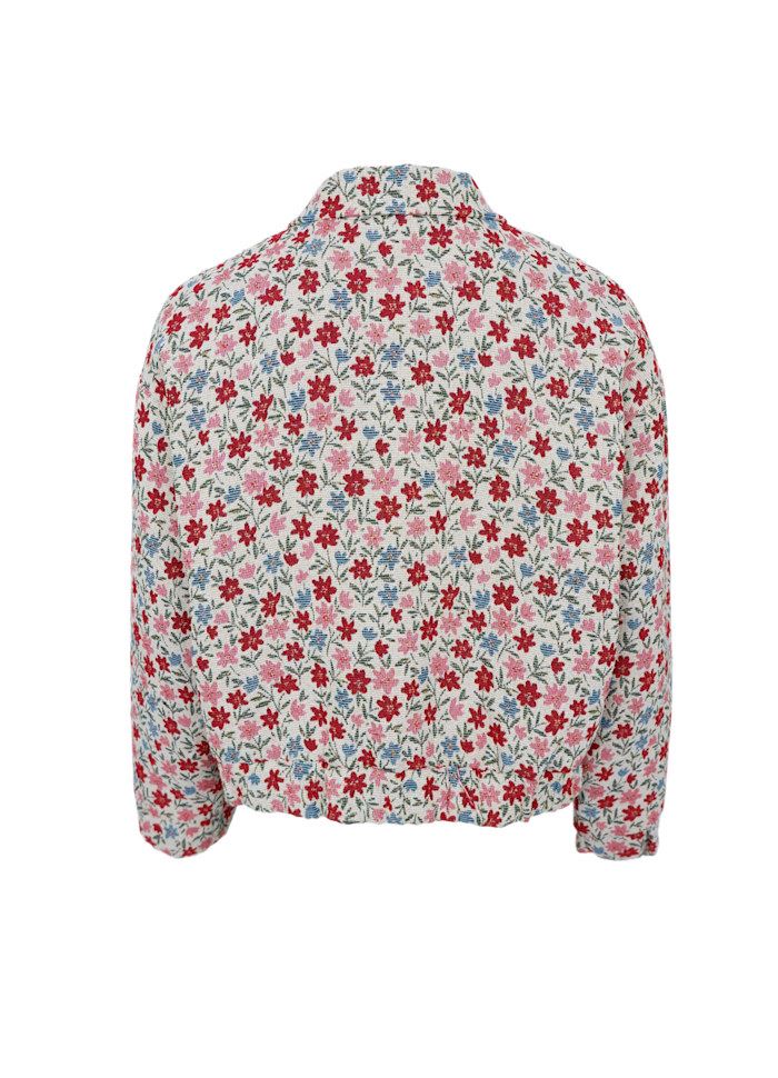 Farverig og feminin jakke i en smuk strukturvævet kvalitet, der giver et eksklusivt og levende udtryk. Den korte længde og let boxy pasform skaber en moderne silhuet, som er nem at style til både hverdag og fest.