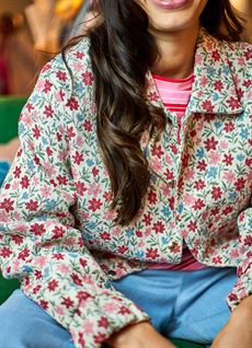 Designet med klassisk krave og knaplukning foran, der tilfører et tidløst touch, mens de lange ærmer giver balance til det cropped look. Den vævede kvalitet med fine detaljer giver jakken karakter og dybde.
