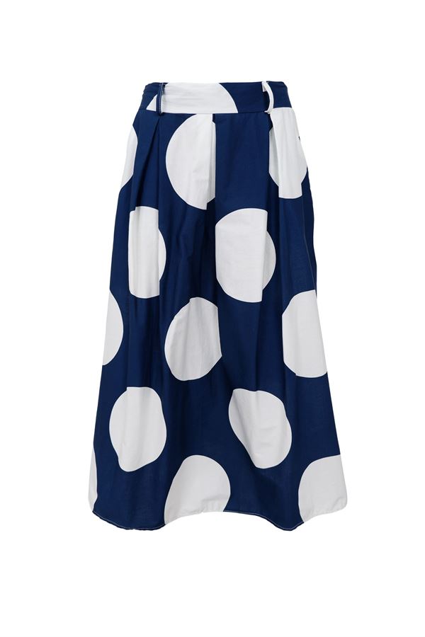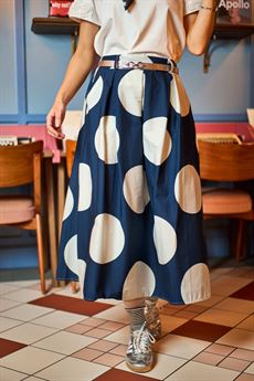 Elegant og feminin midi-nederdel i en let og behagelig bomuldskvalitet, der falder smukt og skaber en flot silhuet. Den mellemhøje talje med bæltestropper giver mulighed for at tilføje et personligt touch, mens de fine læg tilfører volumen og bevægelse.