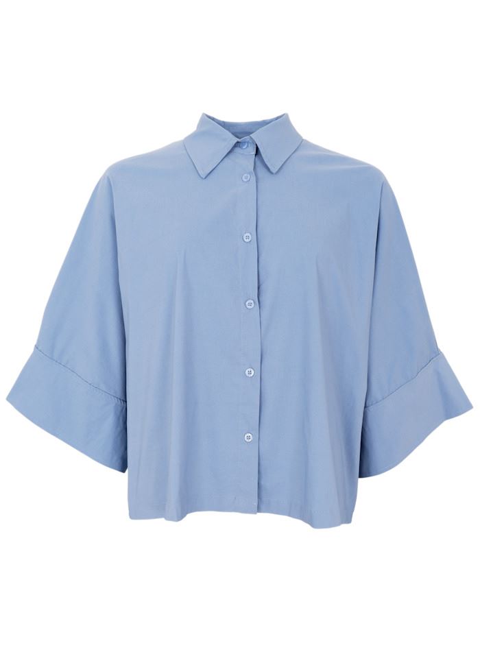 En let og luftig ensfarvet skjorte, designet med korte, brede ærmer og en afslappet pasform. Skjorten er fremstillet i vores populære og super behagelige Davina kvalitet. Skjorten har klassisk krave, knaplukning hele vejen ned og et moderne, boxy snit, der giver et elegant, men ubesværet udtryk.