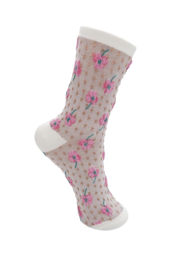 Disse strømper er designet med fine blomster kombineret med diskrete prikker, der giver et feminint og legende udtryk.