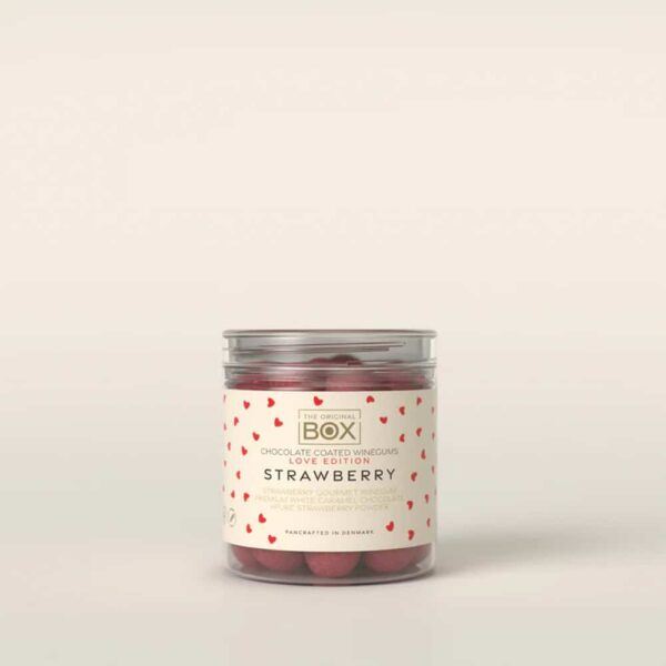 Oplev en eksplosion af sødme med vores gelatinefri jordbærvingummi fra Box The Original af bedste kvalitet. Disse lækre vingummier er indhyllet i premium hvid karamelchokolade og rullet i ufortyndet jordbærpulver af højeste kvalitet. Med en perfekt balance mellem frisk jordbærsmag og cremet karamelchokolade vil disse vingummier forkæle dine smagsløg. Fremstillet uden kompromis på smag eller kvalitet, er den Jordbær variant den ultimative nydelse. Lad dig forføre af den frugtige sødme og delikate tekstur i hver bid.