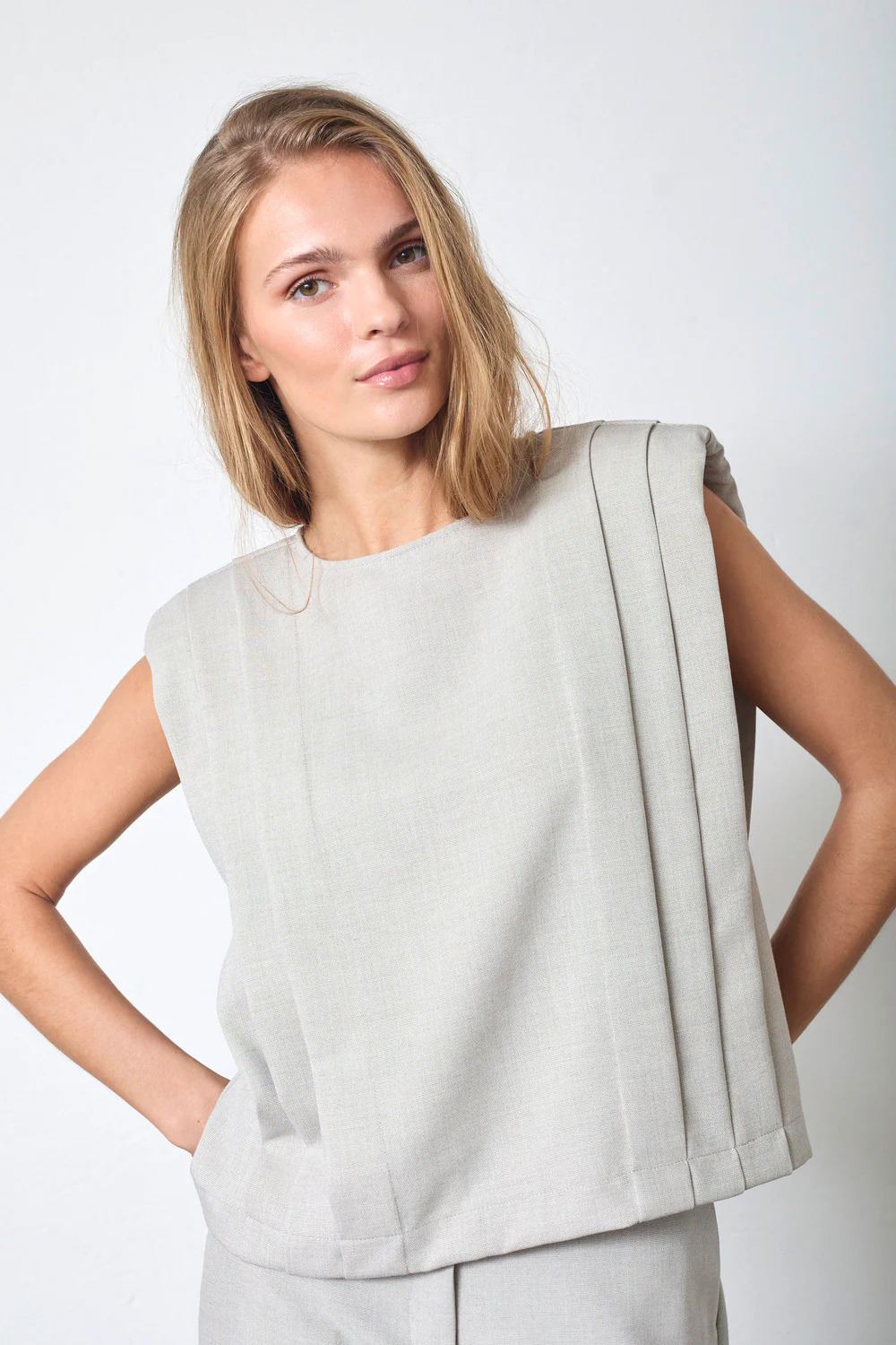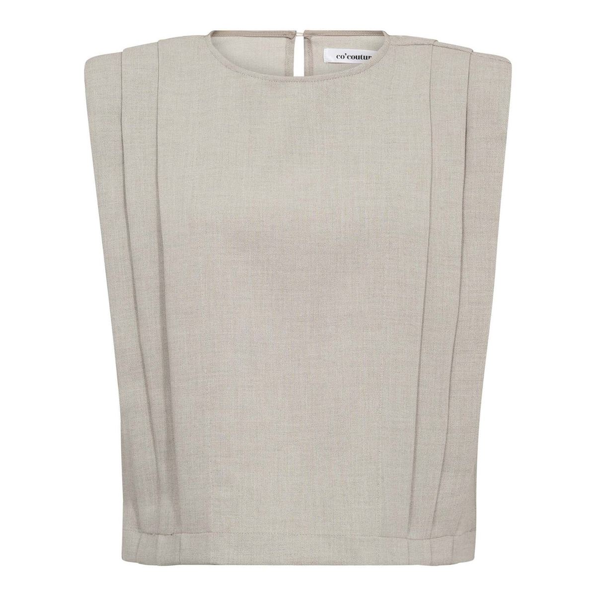 CO’COUTURE Mavacc Padded Pleat Top i farven Bone har polstrede skuldre og fine plisserede detaljer, der giver et elegant og moderne look. Toppen er lavet i blødt materiale og kan nemt styles både til hverdag og fest.