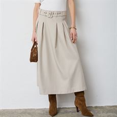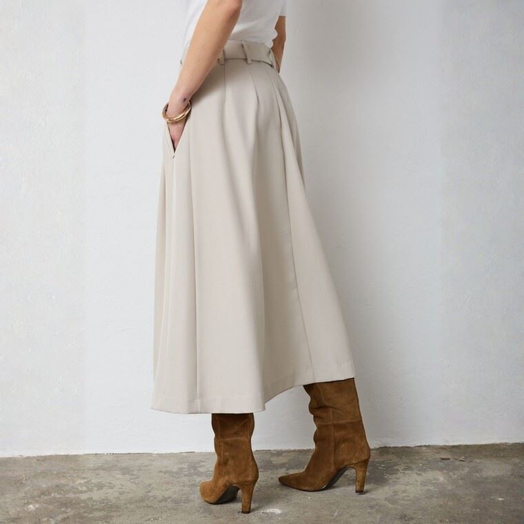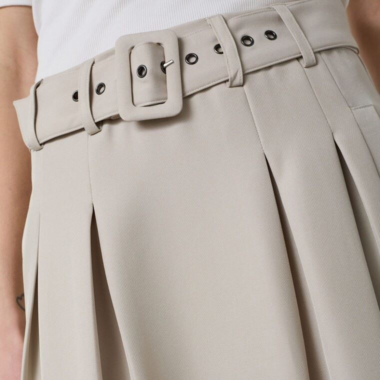 CO`COUTURE NEDERDEL, LUNACC BELT PLEAT SKIRT, TAUPE