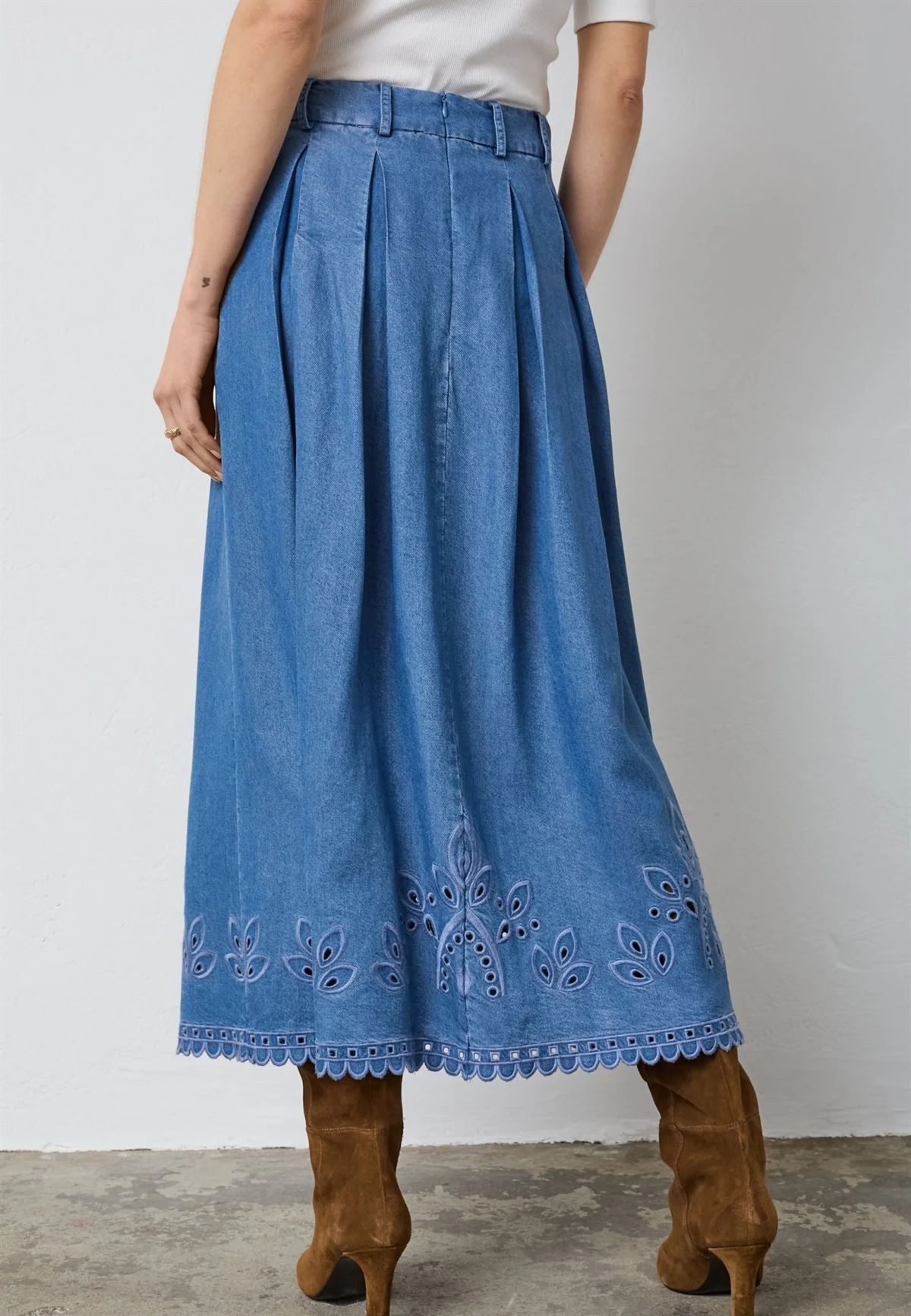 CO`COUTURE NEDERDEL, TILYCC PLEAT EMB SKIRT, DENIM BLUE