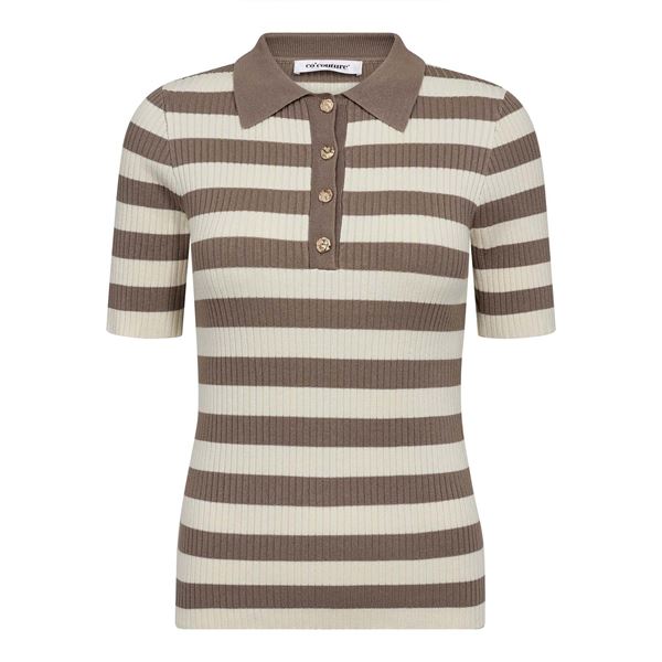 CO`COUTURE POLO, BONNYCC STRIPE S/S POLO KNIT, WALNUT