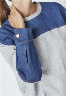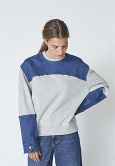 Cool og behagelig sweatshirt i grey melange med rå denim‐mix detaljer – perfekt til at give dit hverdagslook et streetwise twist.
