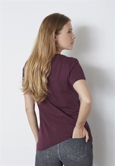 Enkel og stilren t-shirt i dyb vinrød nuance, lavet i blød bomuld med stretch. Perfekt basis t-shirt med et feminint twist.