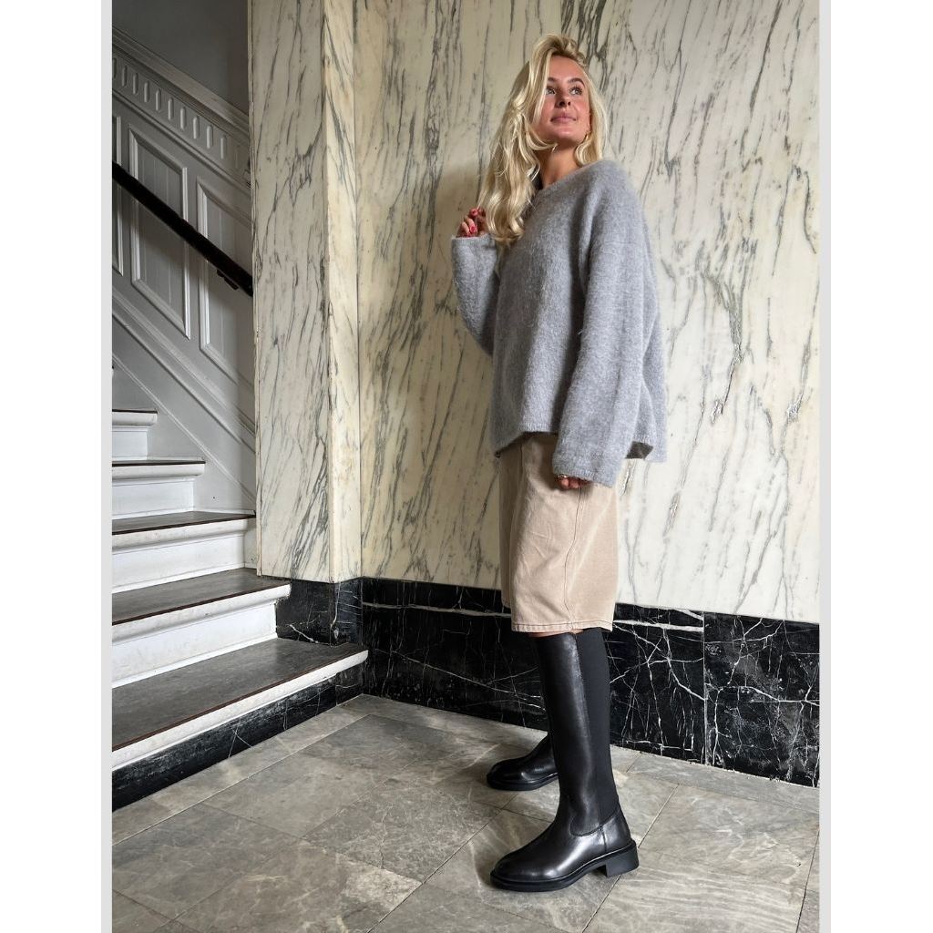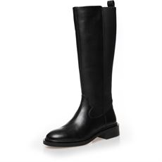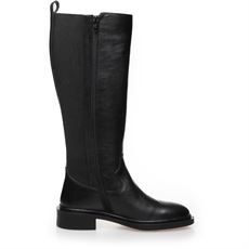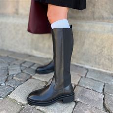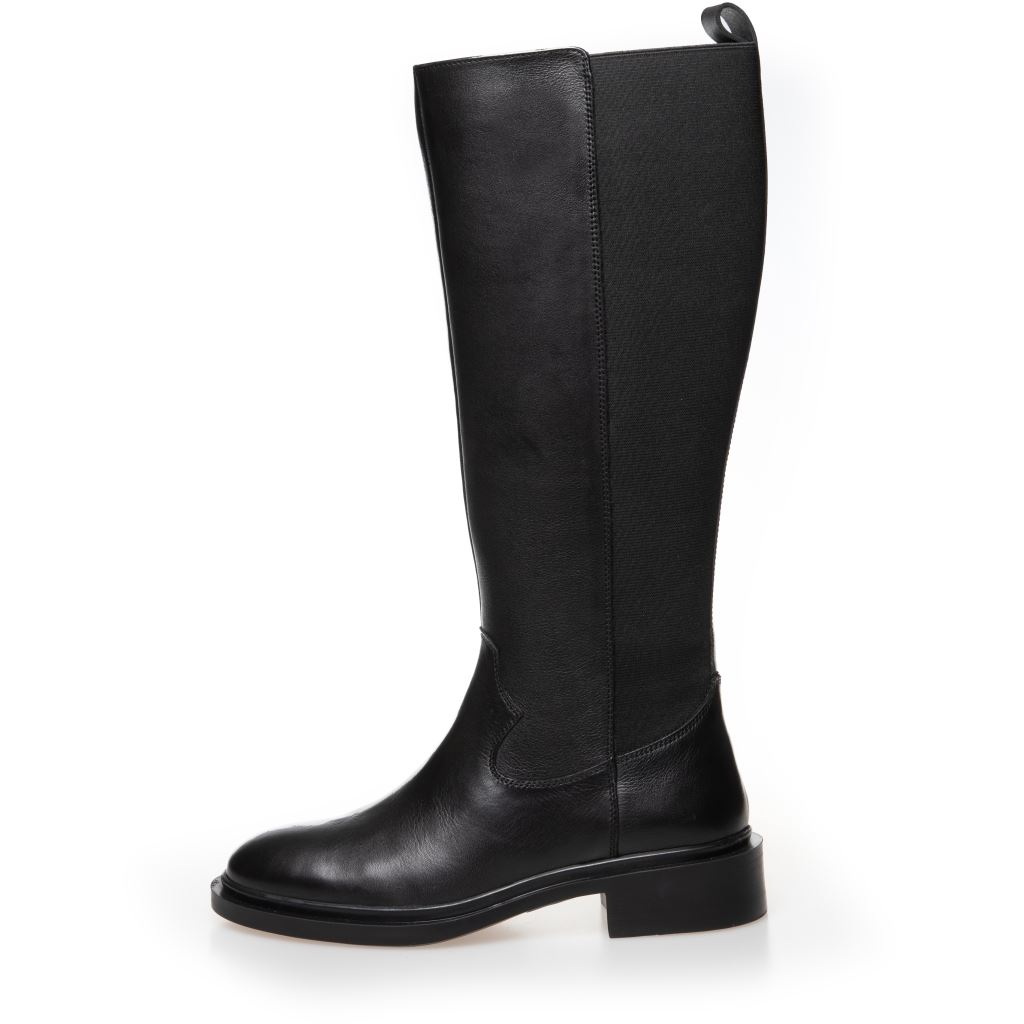 Lang støvle i sort læderfra Copenhagen Shoes. Støvlen har lynlås på indersiden og elastik på bagsiden for optimal pasform.