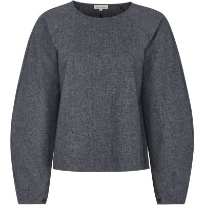 • Blusen har en rund hals og lange “ballon”-ærmer, som giver et blødt, let voluminøst udtryk.