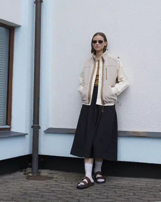 Midi-nederdel i økologisk bomuld med mesh-effekt fra Esmé Studios.