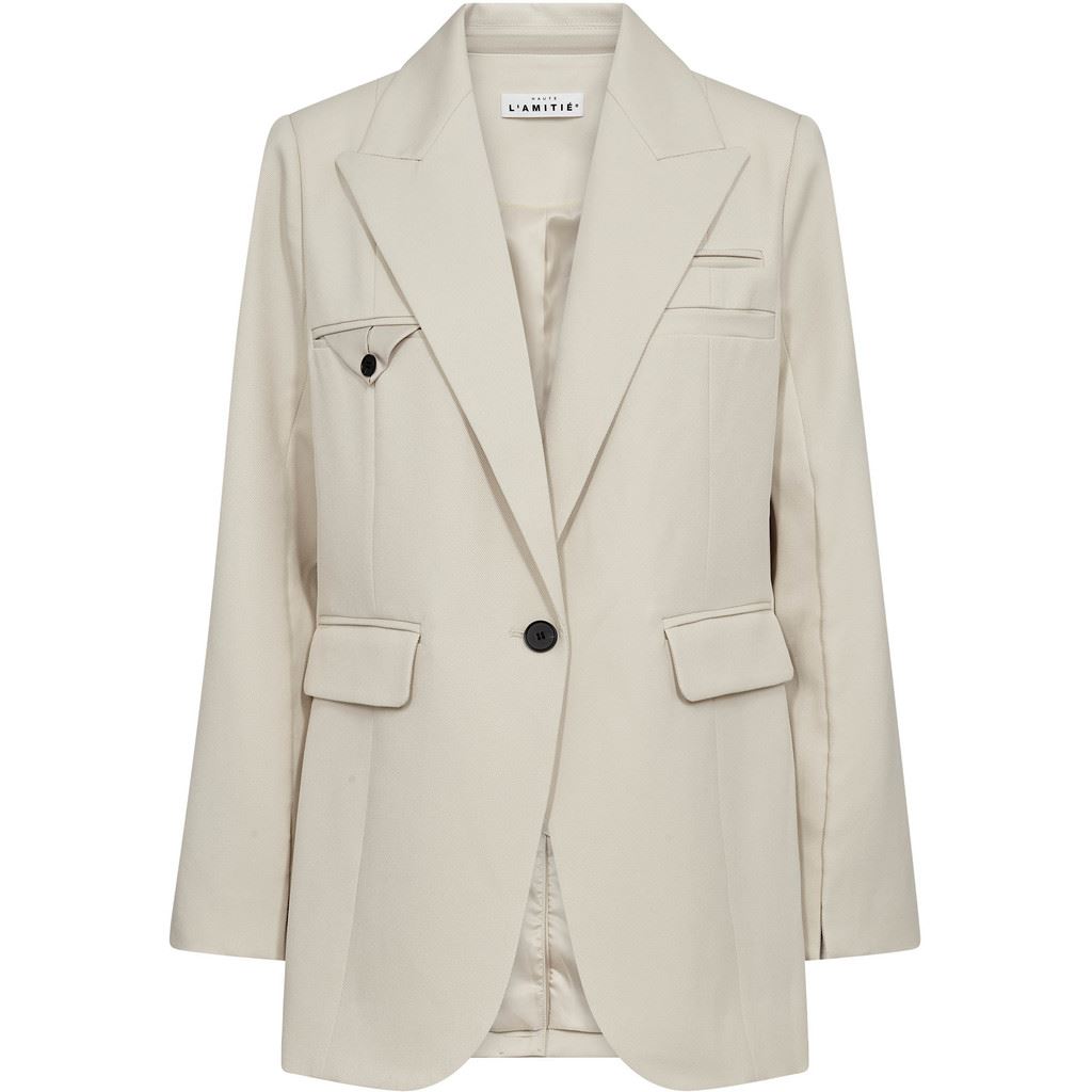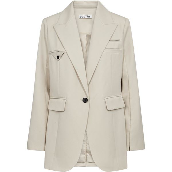 Elegant blazer fra Haute L’Amitié i en smuk perlehvid nuance. Blazeren har et klassisk, skræddersyet look med moderne detaljer, der gør den anvendelig til både hverdag og fest.