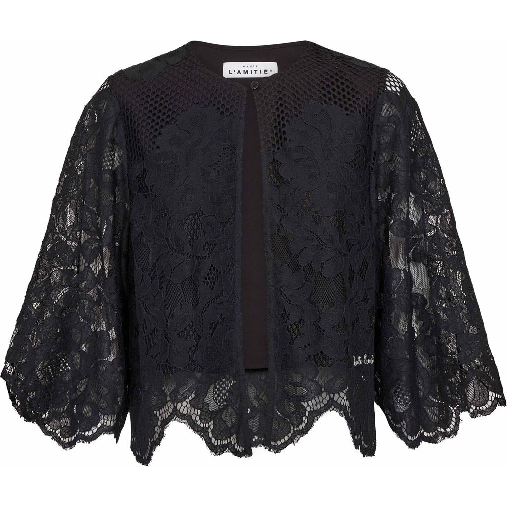 HAUTE L`AMITIÉ BOLERO, CURVEY LACE HEM BOLERO, BLACK