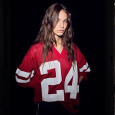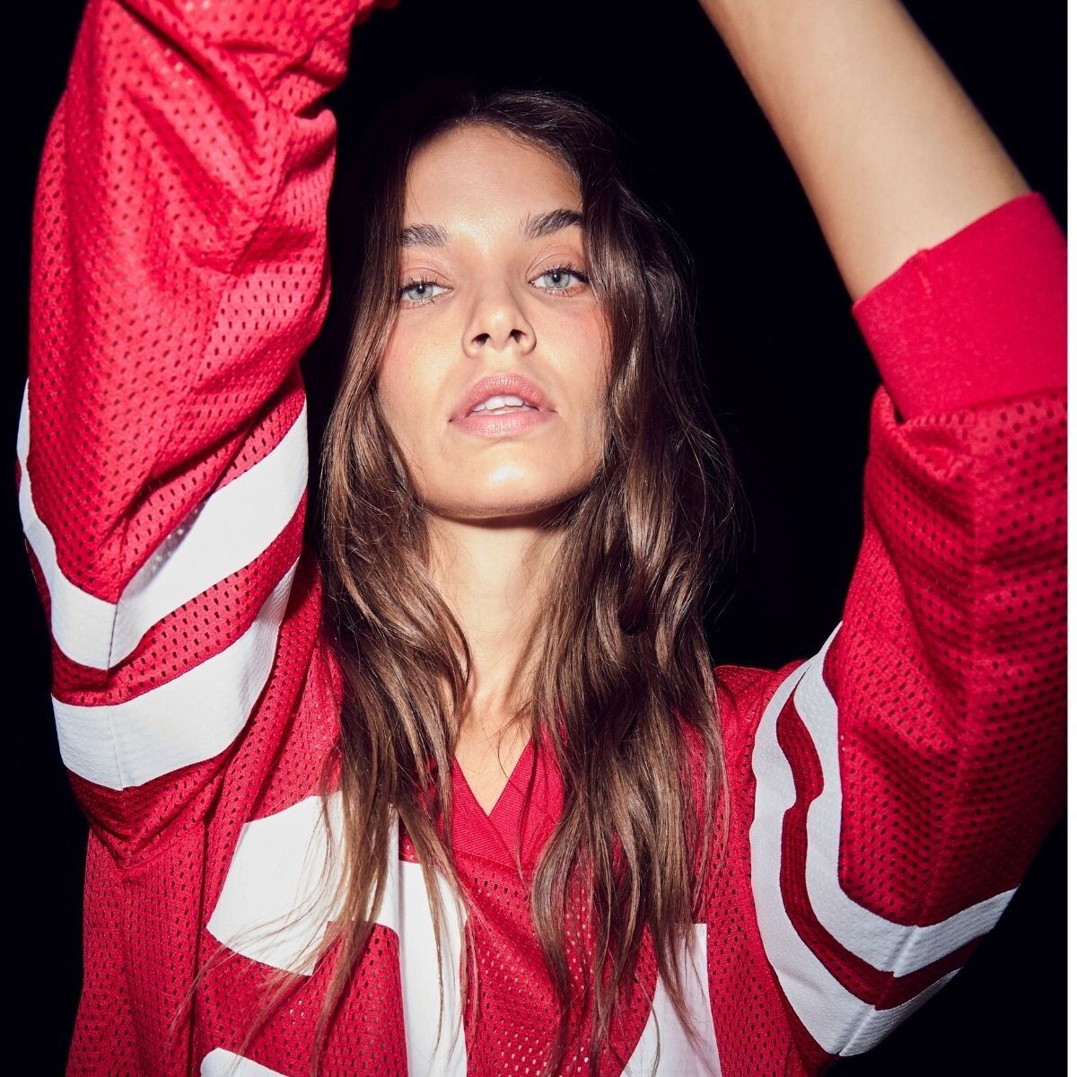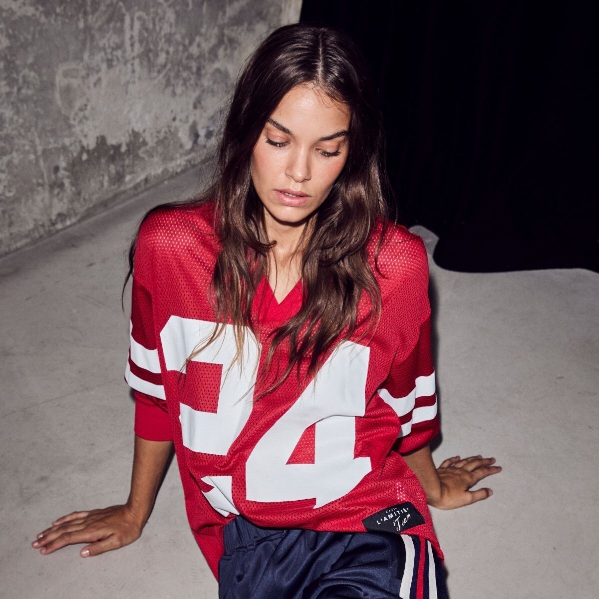 HAUTE L’Amitié Drift Number LS Tee – Red er en rød, langærmet T-shirt i let mesh-materiale med oversized pasform. Den har V-udskæring, hvide striber på ærmerne og et stort hvidt nummerprint på fronten, som giver et sporty, jersey-inspireret look.