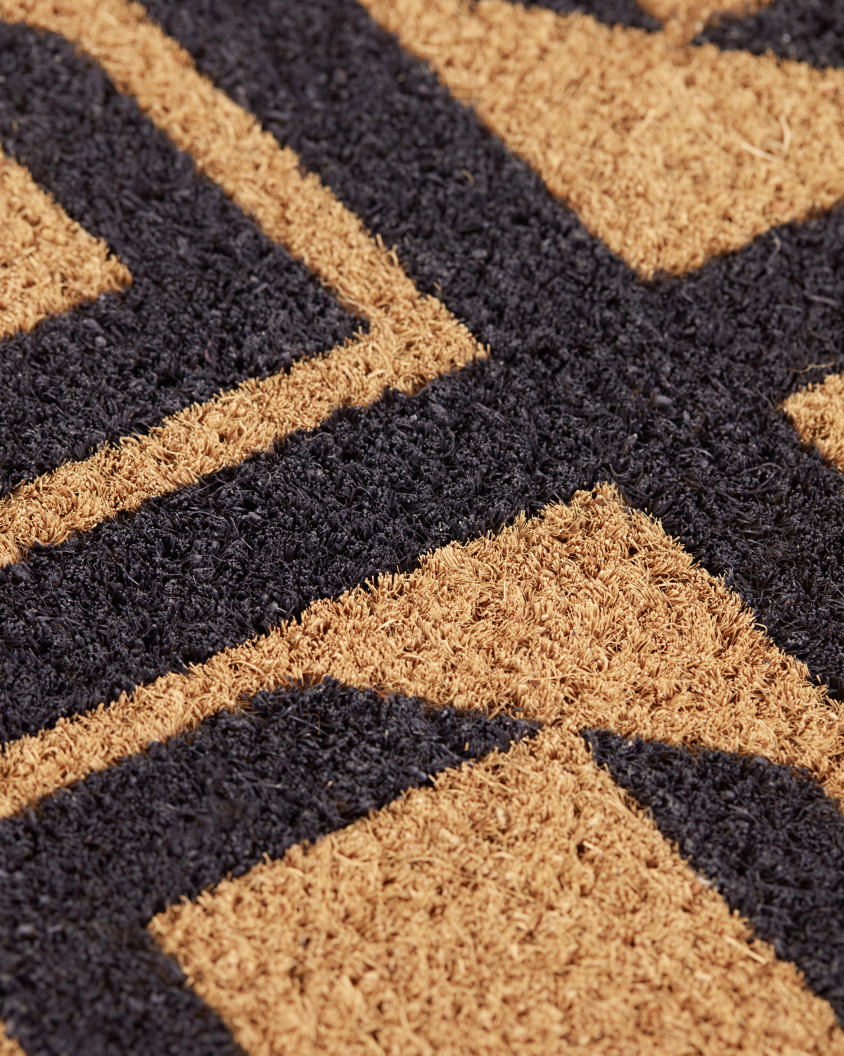 Slidstærk og robust, og med et geometrisk mønster, der lyser op i dit hjem. House Doctor har designet denne lille Indi-dørmåtte med et tofarvet mønster og med latex på bagsiden, så den ikke rutsjer rundt på gulvet. Den er lavet af coir, som er ekstra slidstærke kokosfibre. Disse fibre er også vandafvisende, og dermed får du en dørmåtte, der ser flot ud i lang tid. Læg den ved din hoveddør, hvor den kan tilføje charme til hverdagen.