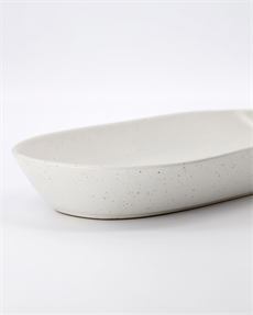 Med det store Pion-serveringsfad fra House Doctor tager dine salater og andet tilbehør sig ud på allerbedste vis. Fadet er aflangt og hvidt og tilføjer et uformelt strejf til din borddækning, især når det kombineres med resten af Pion-serien. Stentøj som dette fad er rustikt og afslappet, men stadig elegant nok til at skille sig ud takket være den hvide glasur. Det afhænger af, hvad du vælger at kombinere serveringsfadet med på bordet.