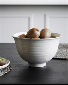 Servér en sprød salat i denne store Pion-skål eller brug den som en uformel frugtskål. House Doctor har lavet skålen i stentøj, der har fået en hvid glasur med små stænk. Stilfuld, men alligevel casual. Brug skålen med resten af Pion-serien eller bland med andet service i en lignende, lys farve. Sæt dit eget præg på borddækningen i form af glas og dekoration. Du vælger selv om din middag skal være afslappet eller lidt mere formel. Med Pion på bordet får du det perfekte fundament til en borddækning, som du kan personalisere og gør til helt din egen.