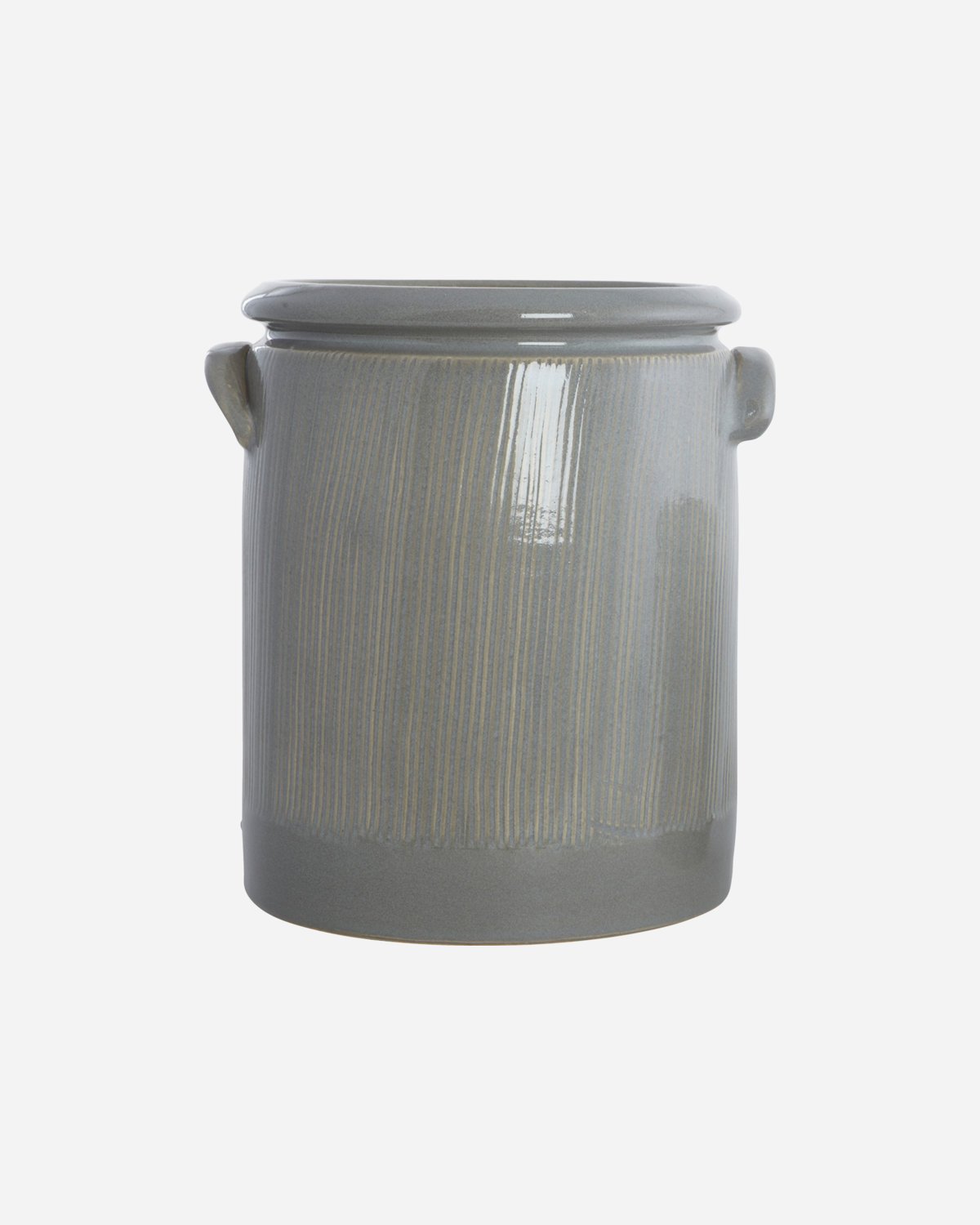 Klassisk urtepotteskjuler fra House Doctor. Pottery M er lavet af ler og har en lys grå glasur, der giver et flot og moderne twist til pottens retrolook. Vær opmærksom på, at farven kan variere fra potte til potte, men den vil dog altid ligge inden for samme farveskala. Brug potten til at tilføre liv og atmosfære til din bolig. Potten har en højde på 24 cm og er perfekt til flotte grønne planter. Kombiner gerne potten med andre materialer og potter i forskellige størrelser. Det giver en flot og frodig kontrast i indretningen