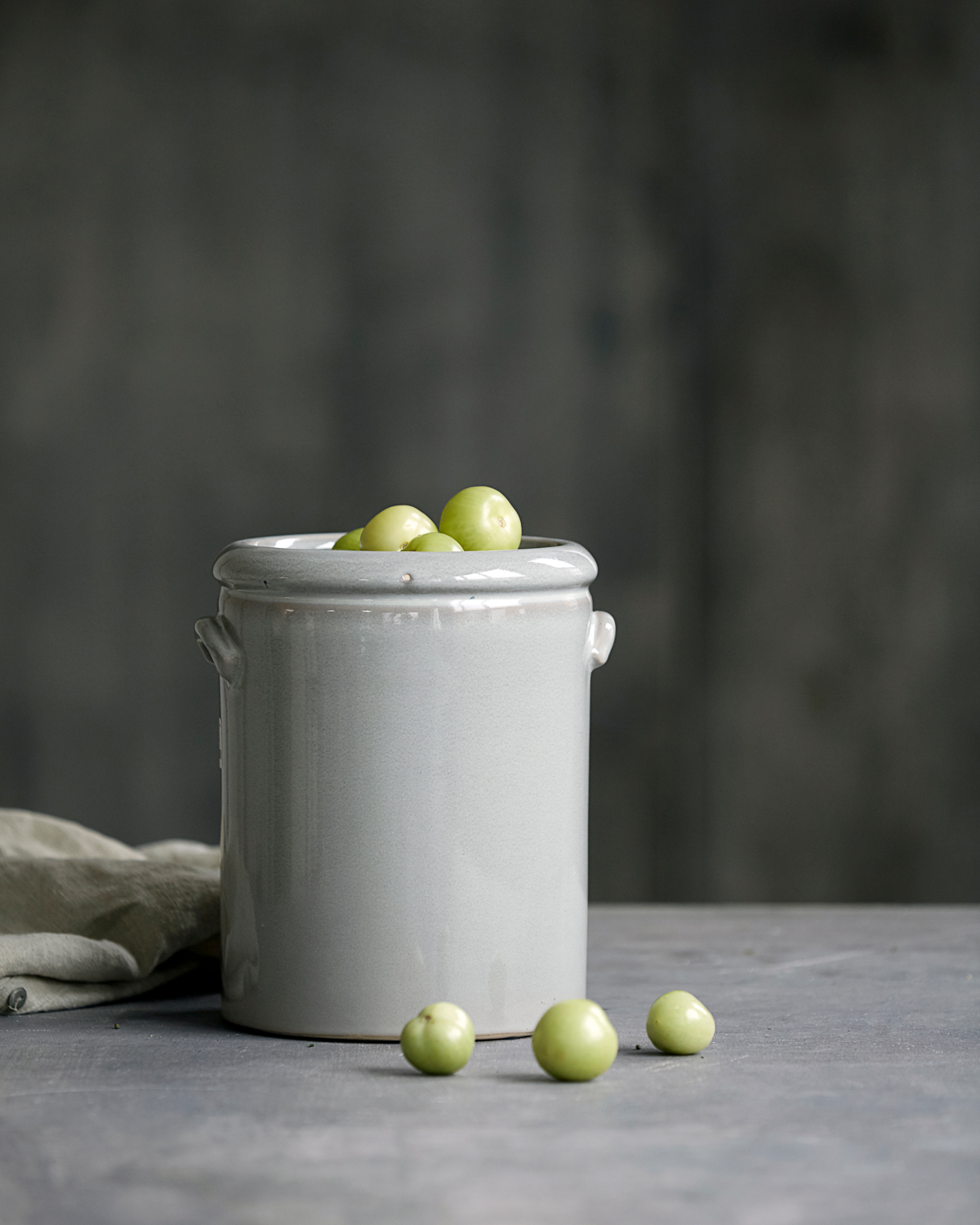 Disclaimer: Dette håndlavede produkt har et rustikt look og er porøst. Af denne grund kan vi ikke garantere, at den er helt vandtæt. For at forhindre beskadigelse af dine overflader skal du bruge en underskål, placere produktet på et beskyttende underlag eller bruge en indsats (medfølger ikke).