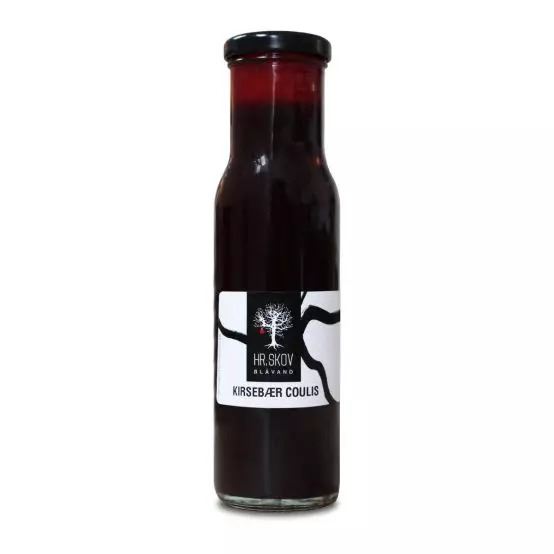 Hr. Skov's Kirsebær Coulis er en helt fint blendet frugtsauce lavet på danske kirsebær. Vi bruger hele frugten til at jævne produktet med.