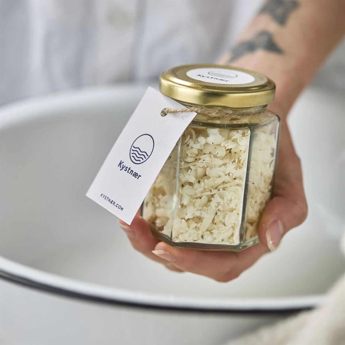 Tang er rig på mineraler, vitaminer og antioxidanter, som virker rensende, beroligende og hjælper med at styrke huden. Sammen med kokosolie, dansk økologisk rapsolie fra Nyborggaard og sheasmør skabes et fodbad, der fugter i dybden og efterlader huden blød.