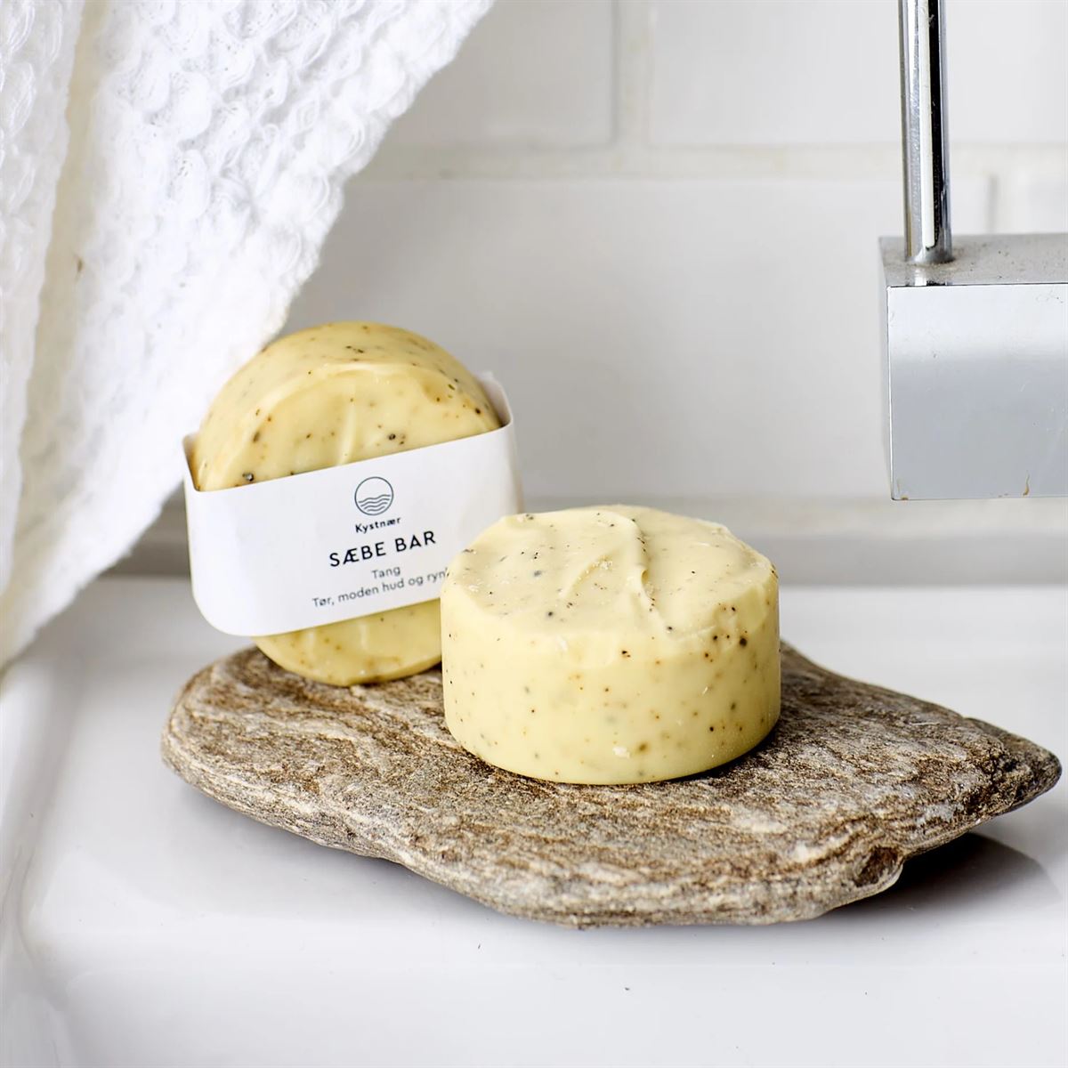 Tang er naturligt rig på mineraler, vitaminer og antioxidanter, som hjælper med at styrke og beskytte huden. Kombineret med kokosolie, koldpresset dansk økologisk rapsolie fra Nyborggaard og sheasmør giver sæben en blød og cremet skum, der efterlader huden ren, frisk og fugtet.