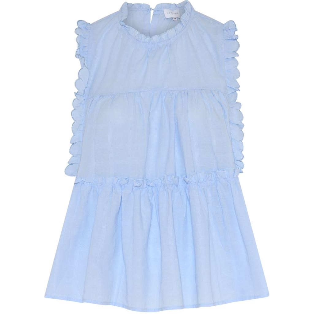 LA ROUGE TOP, JULIE FRILL TOP, LIGHT BLUE