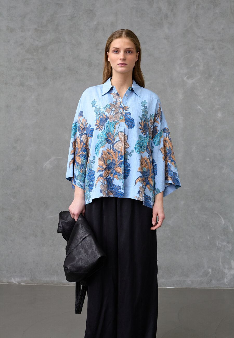love1553 er en luftig skjorte fra Love & Divine i et afslappet oversized snit med et kunstnerisk botanisk print.