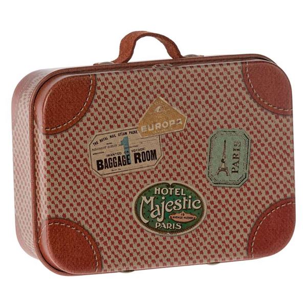 Lille metalkuffert fra Maileg med farverige illustrationer og smukke detaljer kan bruges til enhver lejlighed: små gaver, opbevaring af små genstande eller for mus og små kaniner til at tage deres ejendele med på farten.