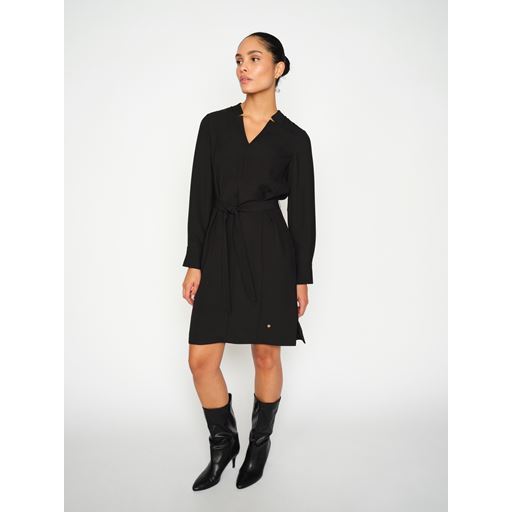 Elegant og alsidig midi-kjole fra Mos Mosh med lange ærmer, v-udskæring og et bindebælte i taljen, som giver mulighed for at tilpasse pasformen og fremhæve silhouetten. Designet med paneldetaljer, der skaber en flatterende og feminin form, samtidig med at stoffet falder smukt og struktureret. Perfekt til både arbejdsdage, hverdag og mere formelle eller festlige lejligheder.