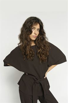 Farven Coffee Quartz er en varm, neutral tone, som gør blusen nem at kombinere med både jeans, bukser eller nederdel og skaber et tidløst og sofisticeret look. Designet er minimalistisk med fokus på komfort og skandinavisk enkelhed, hvilket gør den ideel til både hverdag og mere polerede outfits.