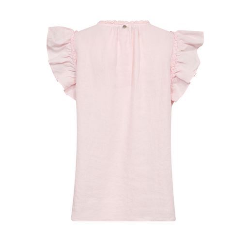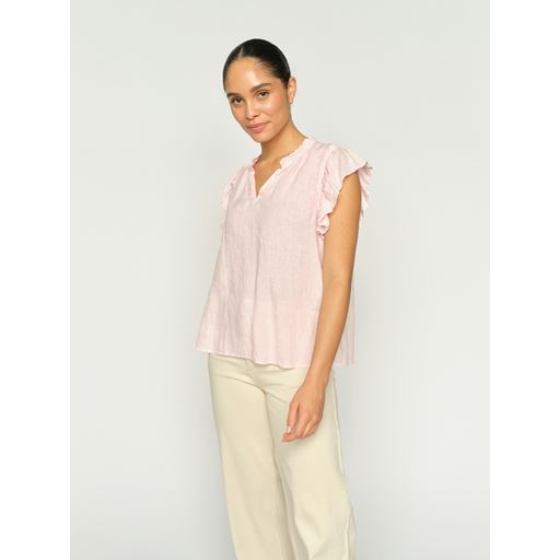 Blusen er fremstillet i åndbart hør, hvilket gør den ideel til både varme dage og lag-på-lag styling. Den bløde nuance Ballet Slipper tilfører et feminint og tidløst touch, som nemt kan styles til både hverdag og mere formelle anledninger.