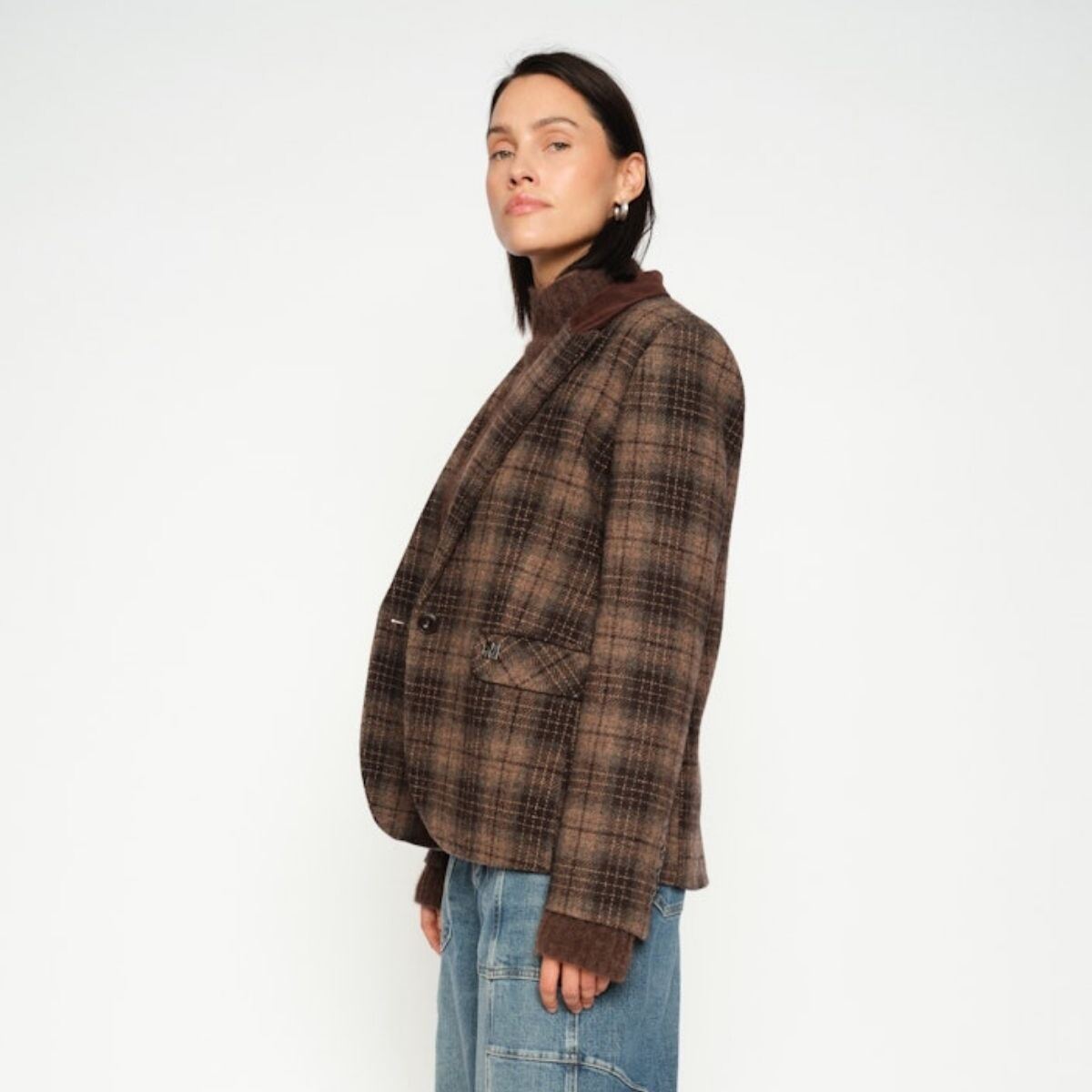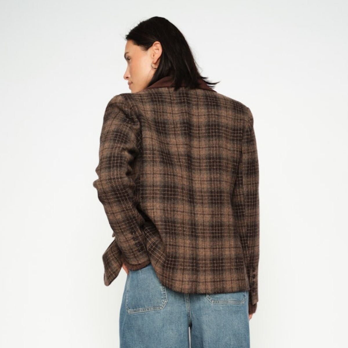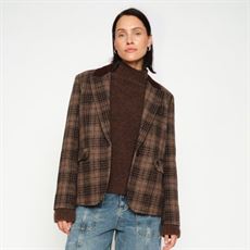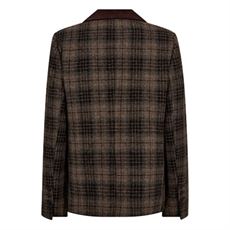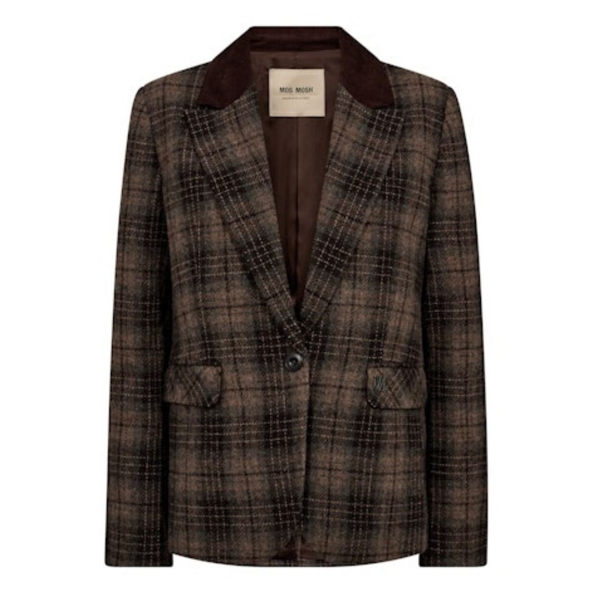 Eksklusiv ternet blazer fra Mos Mosh i 100 % uld. Blazeren er med brun krave, revers og enkelt knaplukning.