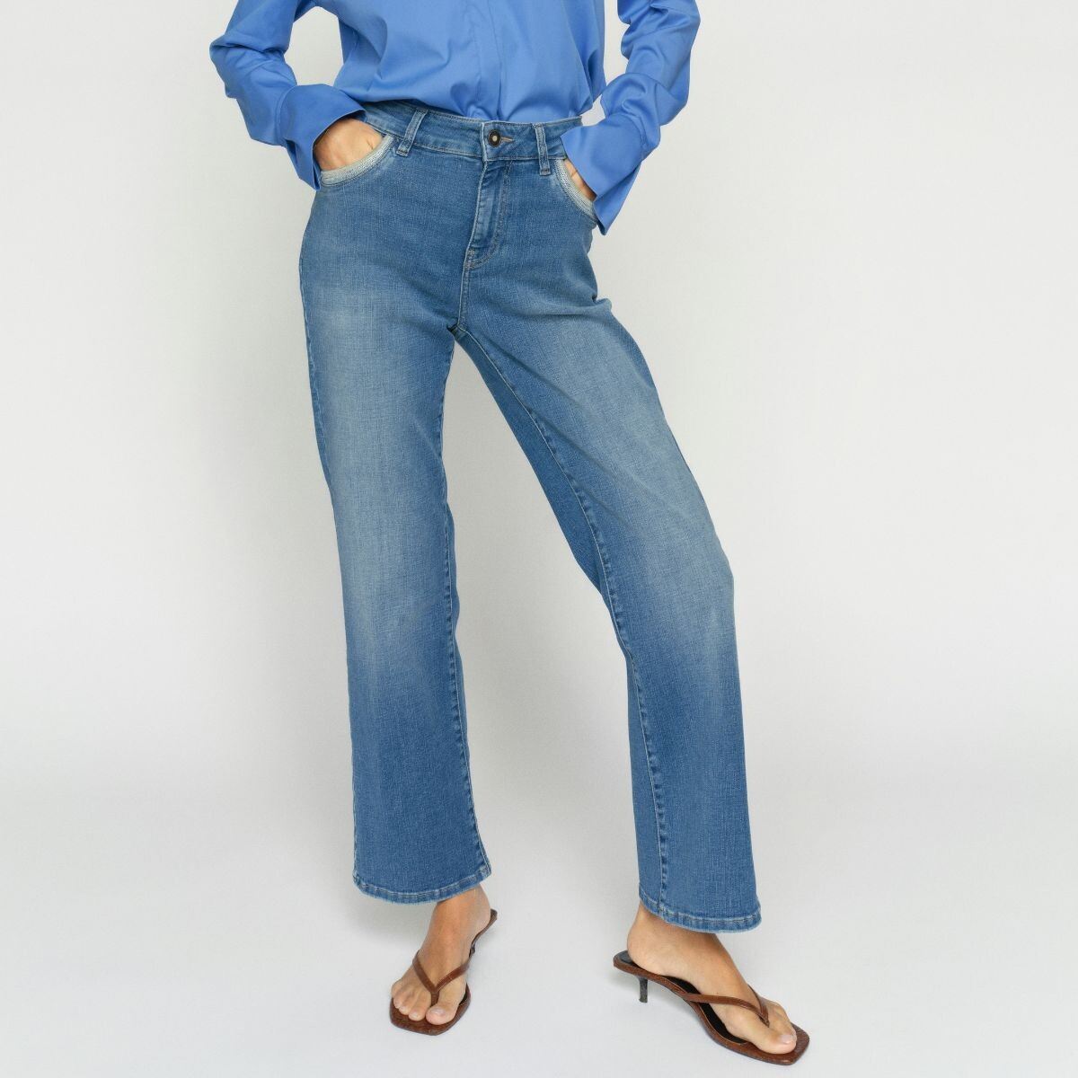 MMCECILIA Perla jeans fra Mos Mosh i mid blue er et par elegante og moderne jeans med fine perledetaljer, der giver et eksklusivt look. Den flatterende pasform og bløde denimkvalitet sikrer høj komfort og gør dem ideelle til både hverdag og mere dressed-up outfits.