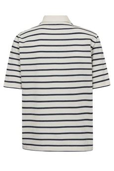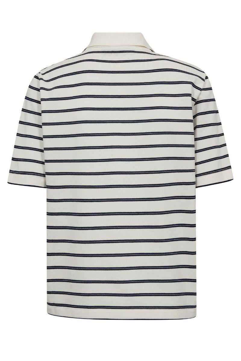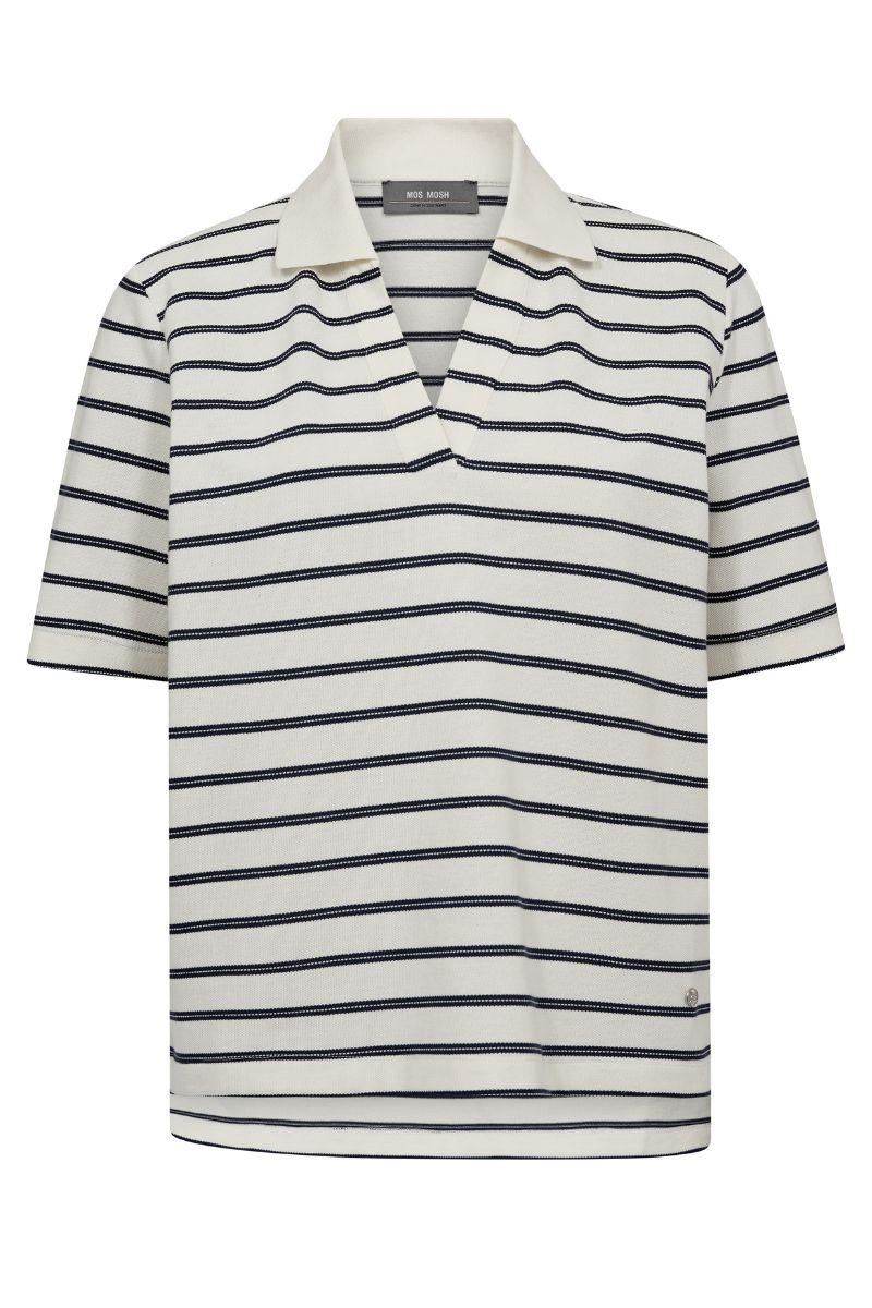 MOS MOSH T.SHIRT, MMMILENA SS STRIPE POLO TEE, MARITIME BLUE