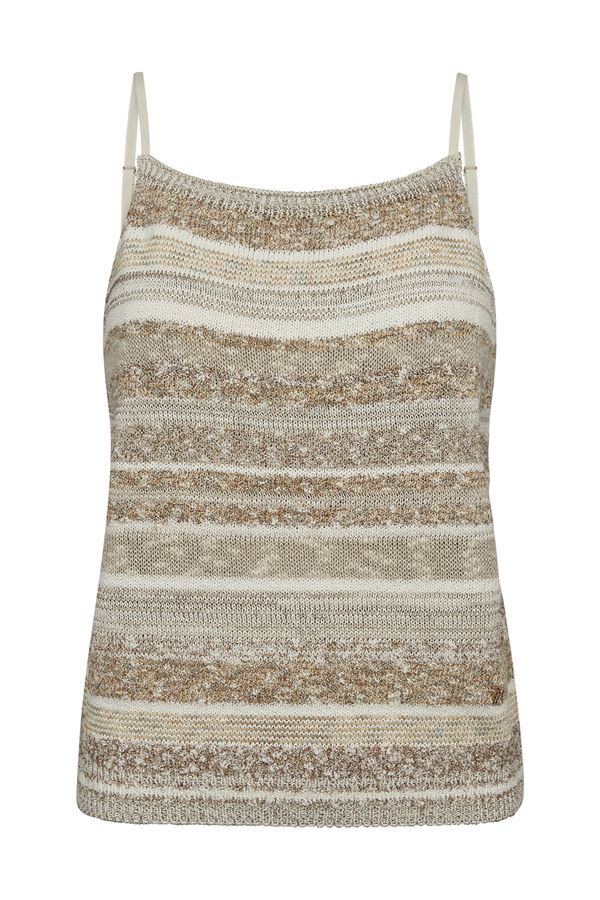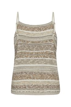 Toppen er fremstillet i en blød og behagelig strikkvalitet, som føles let mod huden og sikrer høj komfort hele dagen. Den har en flatterende pasform, der smyger sig pænt til kroppen uden at stramme, og gør den nem at style med både jeans, nederdele eller habitbukser.