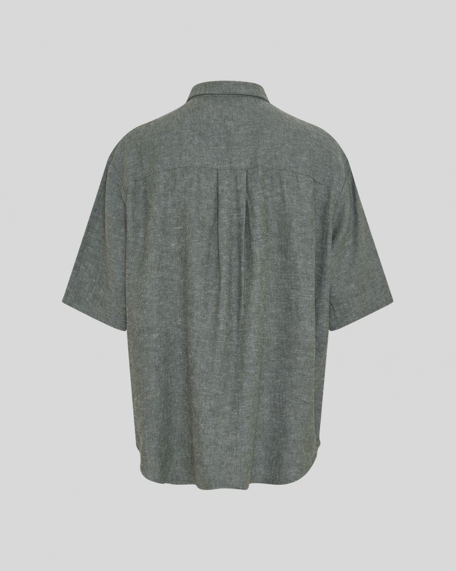 Lang hørskjorte i hørblanding med gennemgående knaplukning foran. Klassisk krave. 3/4-lange ærmer. Lige silhuet.