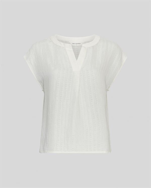 MSCHBlanka Amrita SS Top er en let og feminin top, ideel til varme dage. Toppen har en blød og behagelig pasform. Toppen har en V-hals og korte ærmer, der giver et luftigt og stilfuldt udtryk.