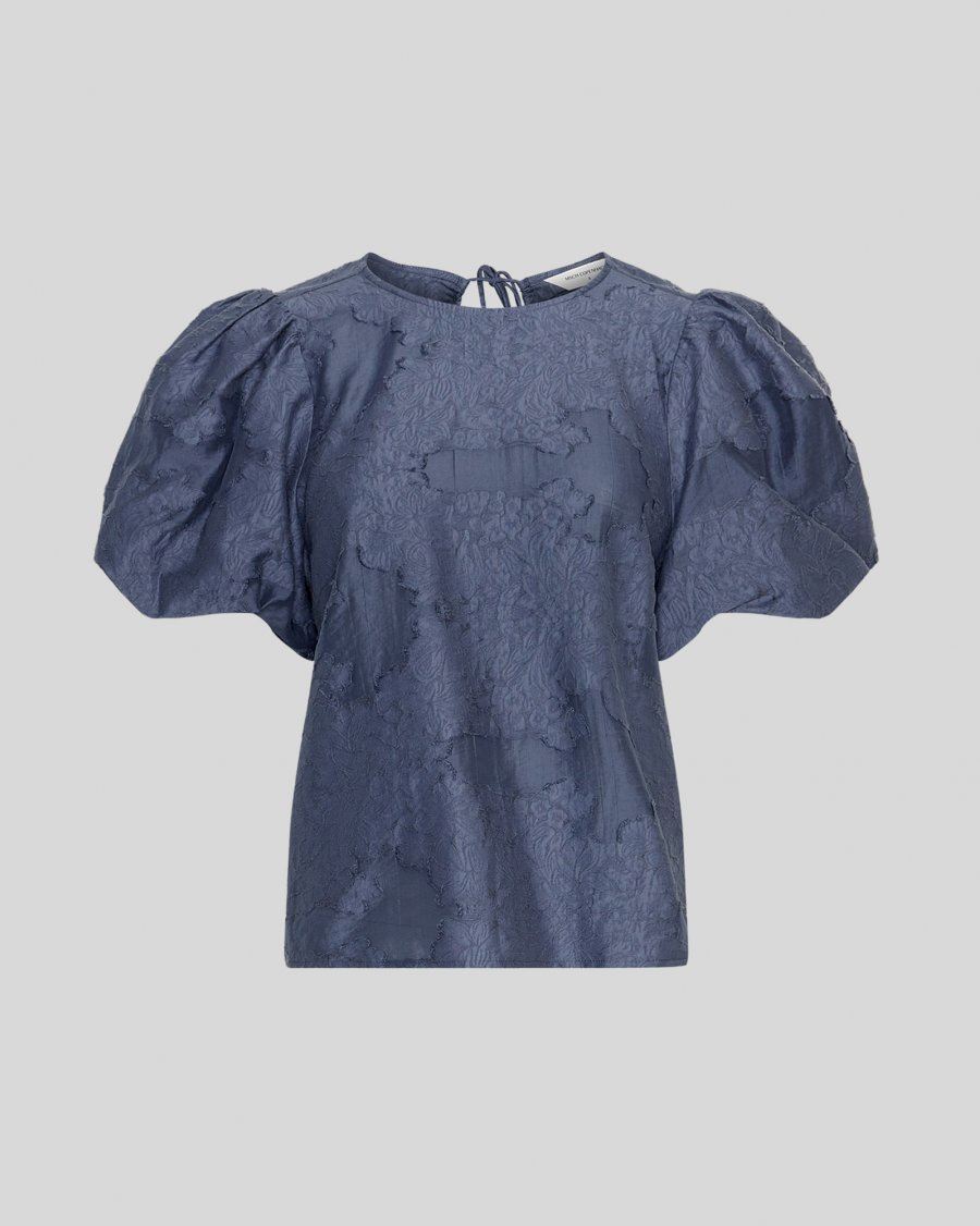 MSCHorkidea 24 Top er en kortærmet top i struktureret materiale. Designet med korte puffærmer og bindelukning i nakken.