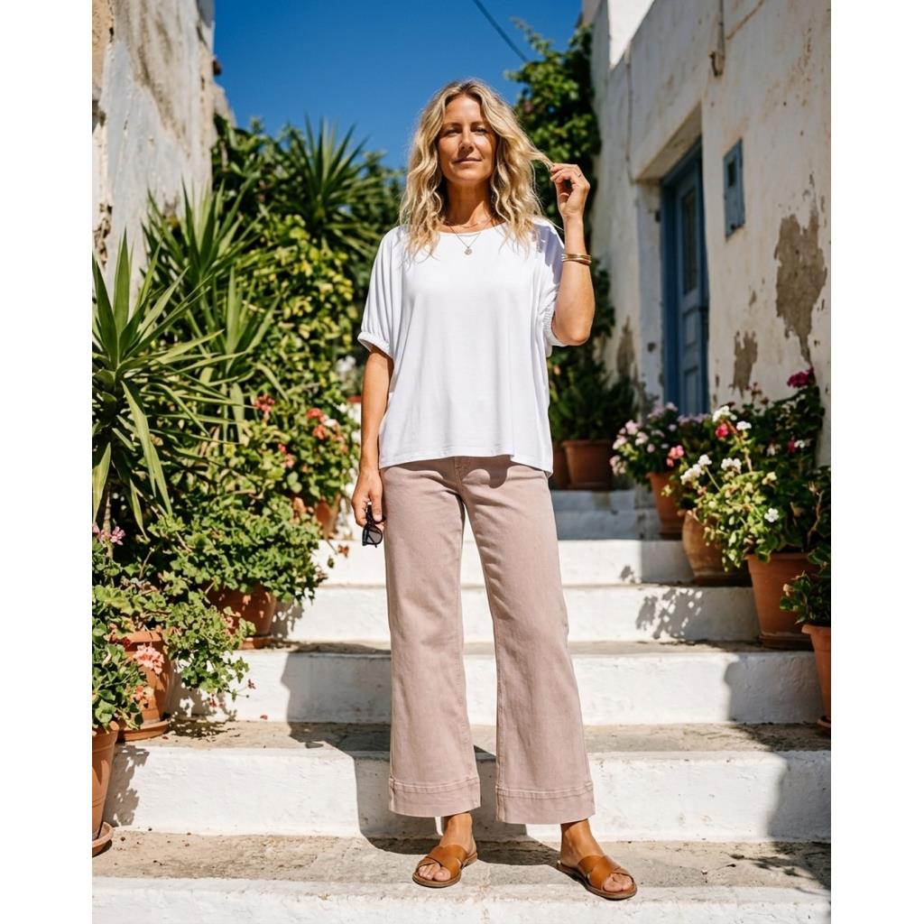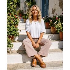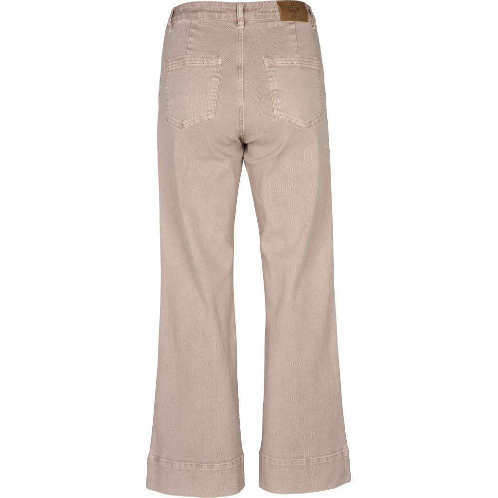 Malia Jeans er en super lækker jeans i en fin rosa farve med vidde. Bukserne har mellemhøj talje og fast linning med bæltestropper, to sidelommer samt to baglommer. Benene afsluttes med en bred, påsyet kant forneden, som giver et markant og struktureret udtryk. Bukserne er med lynlås og en enkelt knap og er i en blød og lækker kvalitet