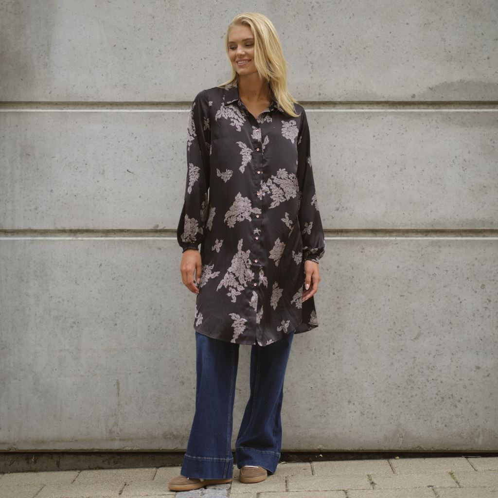 Silje skjortekjole fra Prepair  er en super fin gennemknappet kjole med klassisk skjortekrave, lommer i siderne og lange ærmer der afsluttes med en smal smockkant .