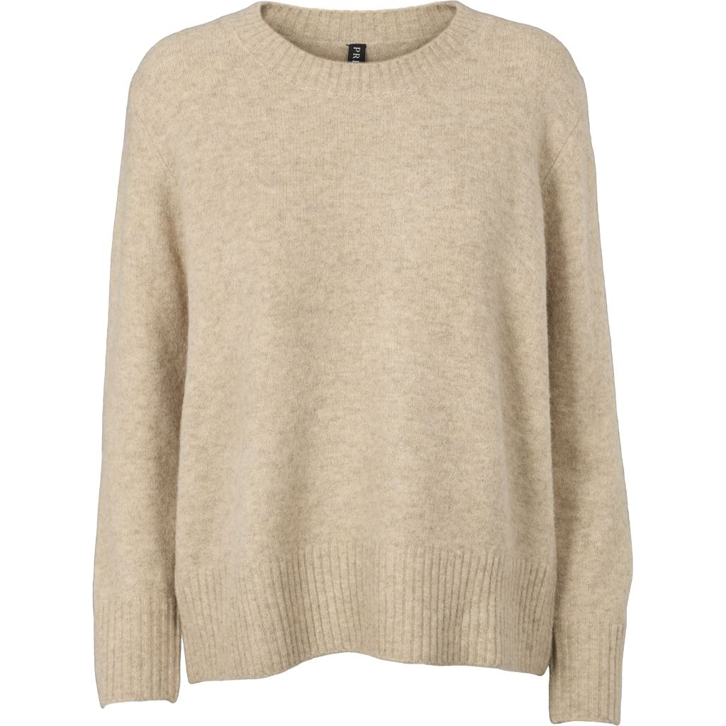 Strikken har rund hals og ribafslutninger ved hals, ærmer og i bunden.