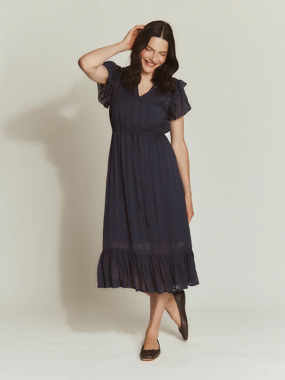 RWGloria SS Midi Dress er en let og luftig kjole med V-hals og korte ærmer. Diskrete, feminine flæsedetaljer og et lille bindebånd i taljen skaber en flatterende silhuet, der giver kjolen et elegant og romantisk udtryk – perfekt til både hverdag og særlige lejligheder. Kjolen har foer, der stopper ved knæet, hvilket giver et elegant og behageligt look.