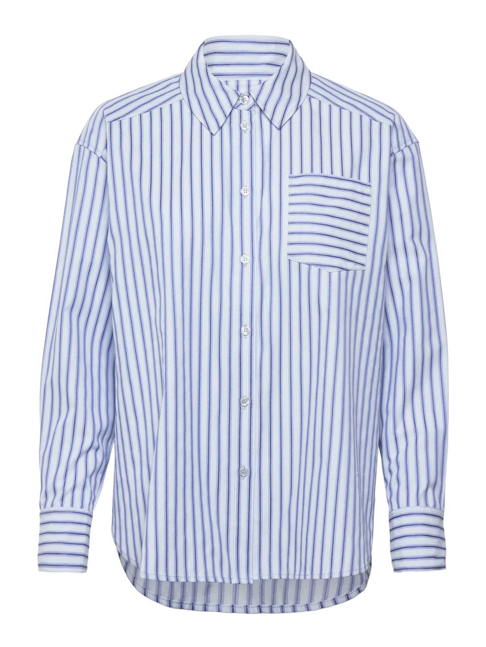 ROSEMUNDE SKJORTE, RWULLA LS OVERSIZE SHIRT, BABY BLUE STRIPE