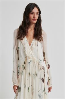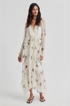Designet har et romantisk og sommerligt udtryk, som gør kjolen ideel til både hverdag, ferier og festlige sommeranledninger. Den lange længde kombineret med det fine print skaber et stilfuldt og feminint look.