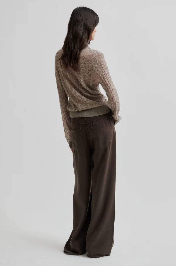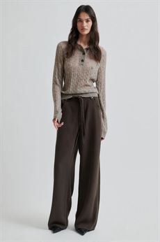 SECOND FEMALE PULLOVER, VESPA KNIT LS POLO, MID BROWN MELANGE