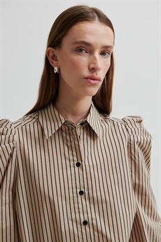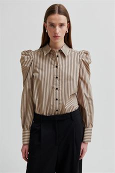 Second Female figursyet stribet skjorte. Skjorten er fremstillet i en glat bomuldsblanding med gennemgående striber. Normal krave og gennemgående knaplukning. Pufskuldre og lange ærmer med manchetter med knapper. Tætsiddende pasform.