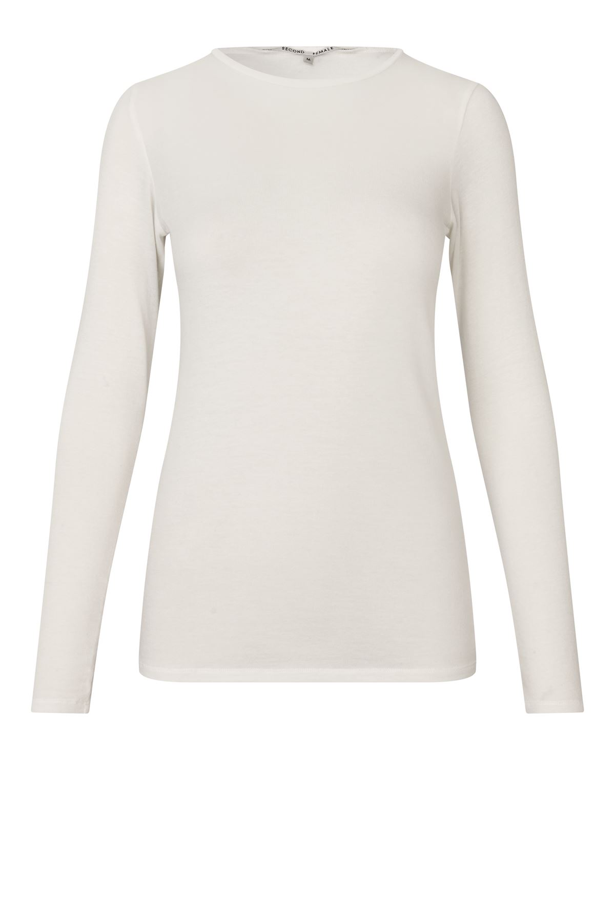 Second Female T-shirt i merino. T-shirten er fremstillet i en blød og stretchy merinoblanding. Rund hals og lange ærmer. Tætsiddende pasform, der giver hudvenlig komfort.